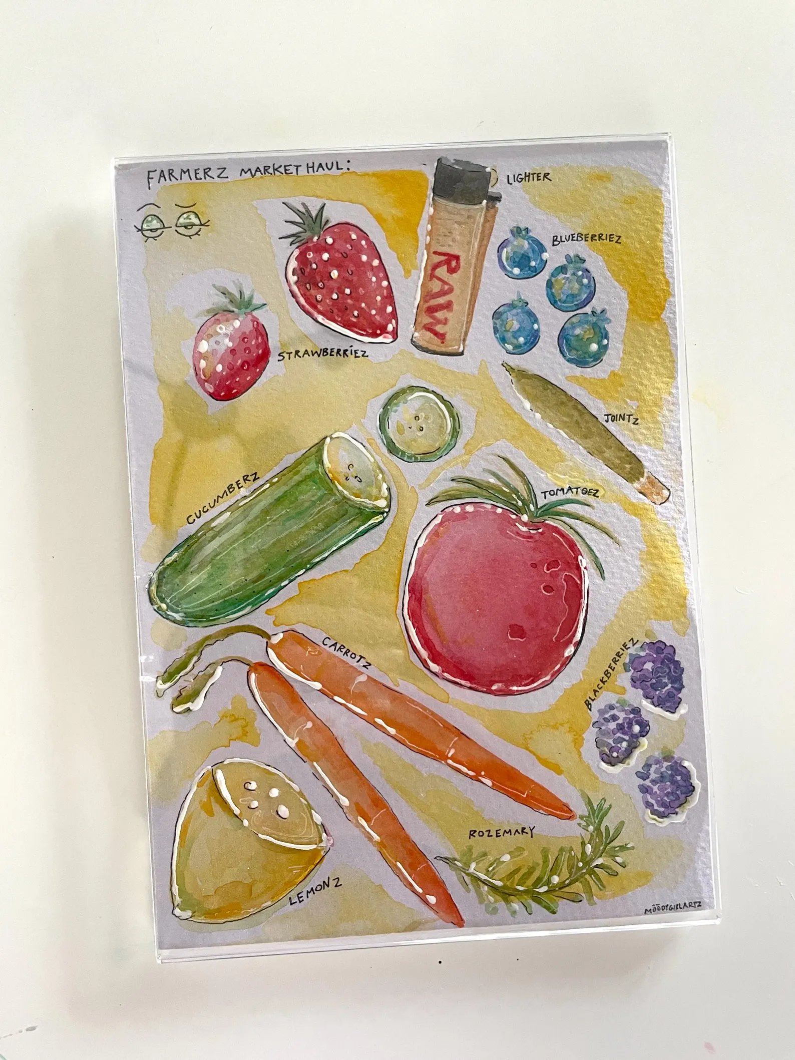 cute & silly watercolor/marker/some acrylic paint on thick watercolor paper.